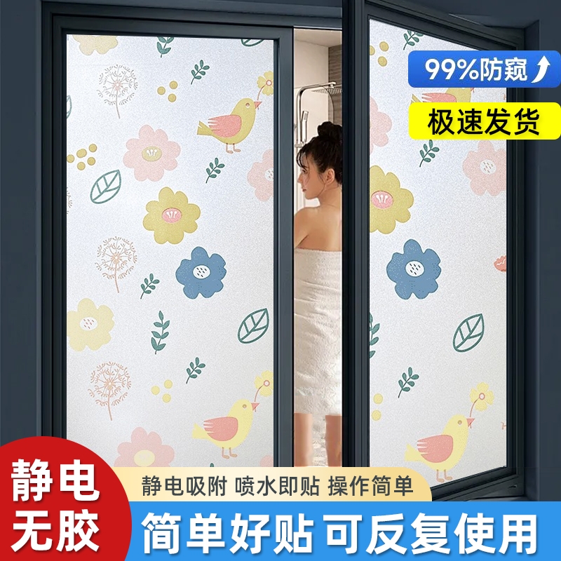全遮光贴纸卫生间窗户防走光浴室玻璃磨砂贴膜静电防偷窥猫咪窗纸