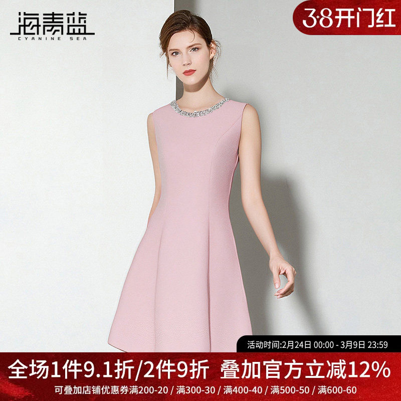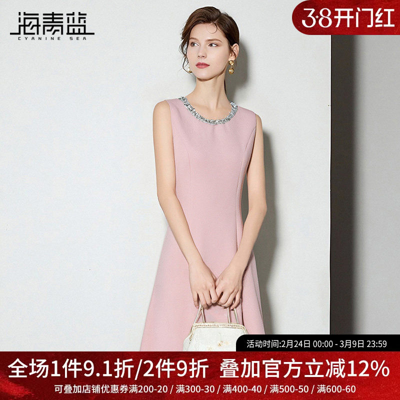 海青蓝 无袖连衣裙2025年秋冬新款纯色女装高级修身中长款背带裙
