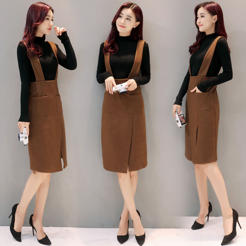 【秋冬裙子】2025新款韩版修身背带裙+针织毛衣两件套套装裙子潮