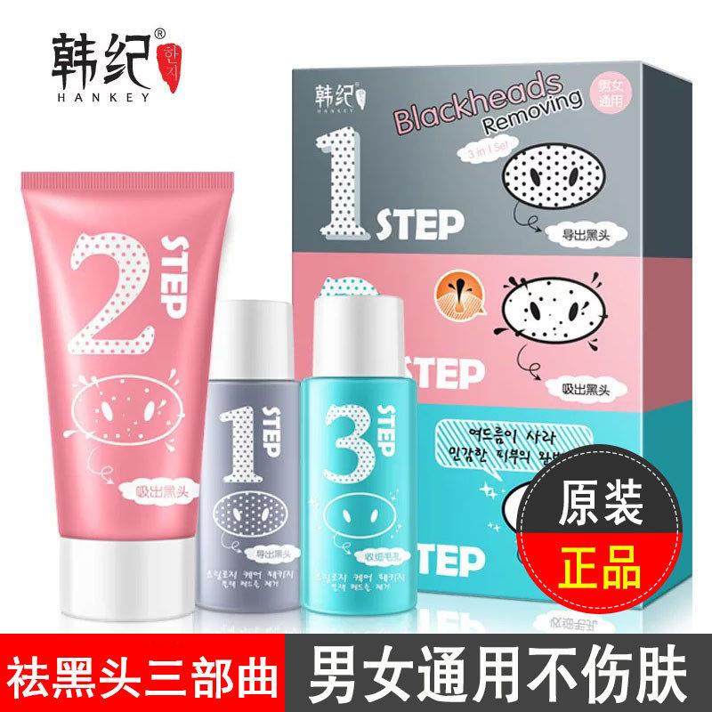 韩纪祛黑头导出精华液撕拉式去粉刺鼻膜贴收缩毛孔三部曲套装正品