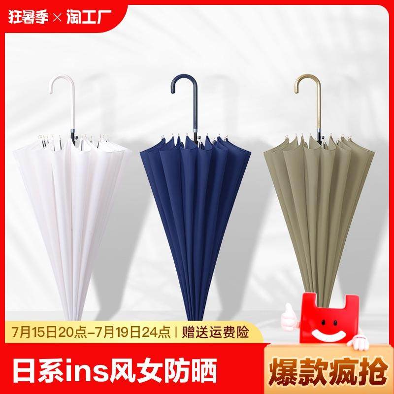 长柄雨伞女防晒遮阳伞晴雨两用16骨弯钩伞太阳伞折叠自动黑胶手动