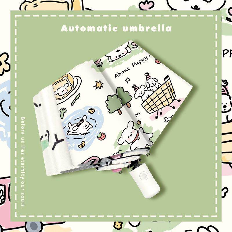 雨伞折叠自动晴雨两用防紫外线女遮阳伞黑胶防晒学生卡通狗太阳伞