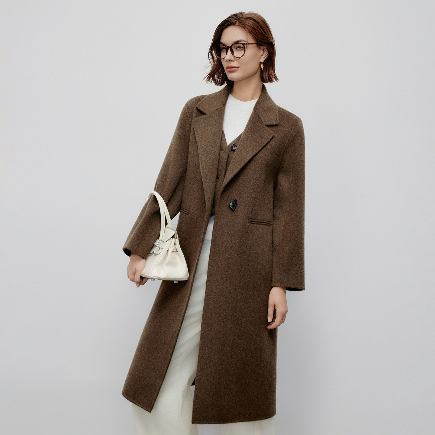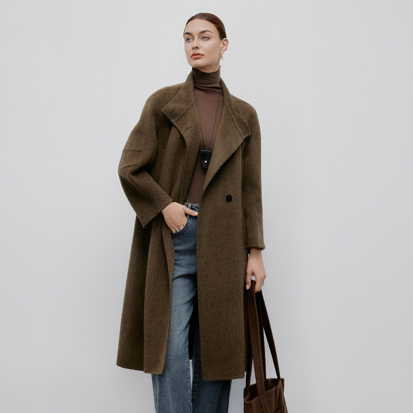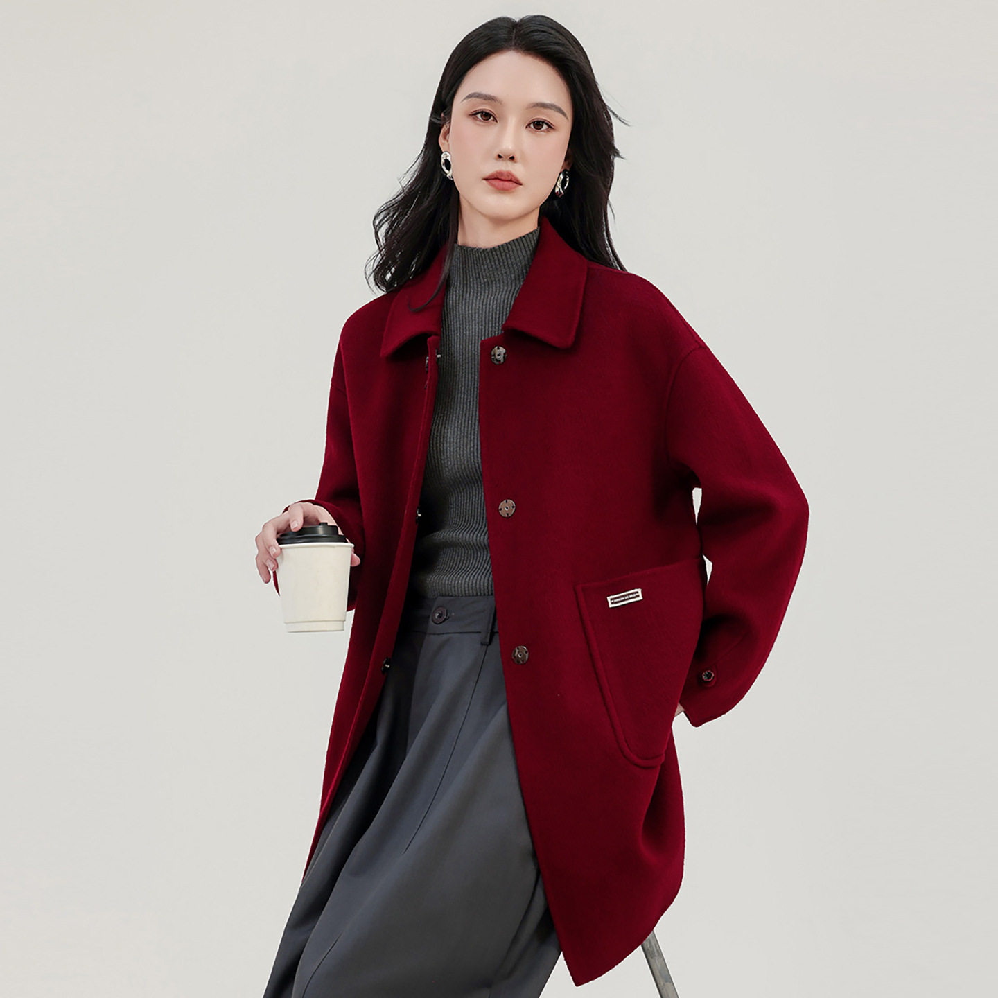 - 羊毛双面呢大衣中长款