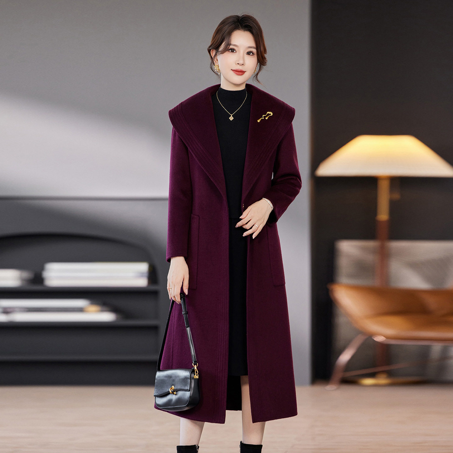 - 毛呢大衣长款过膝