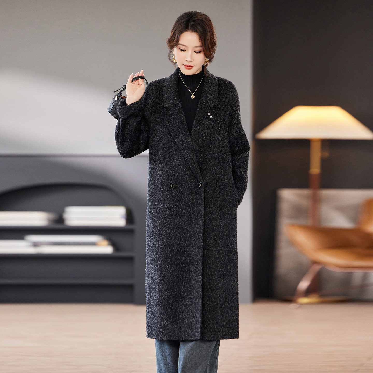 - 羊驼毛 大衣女中长款