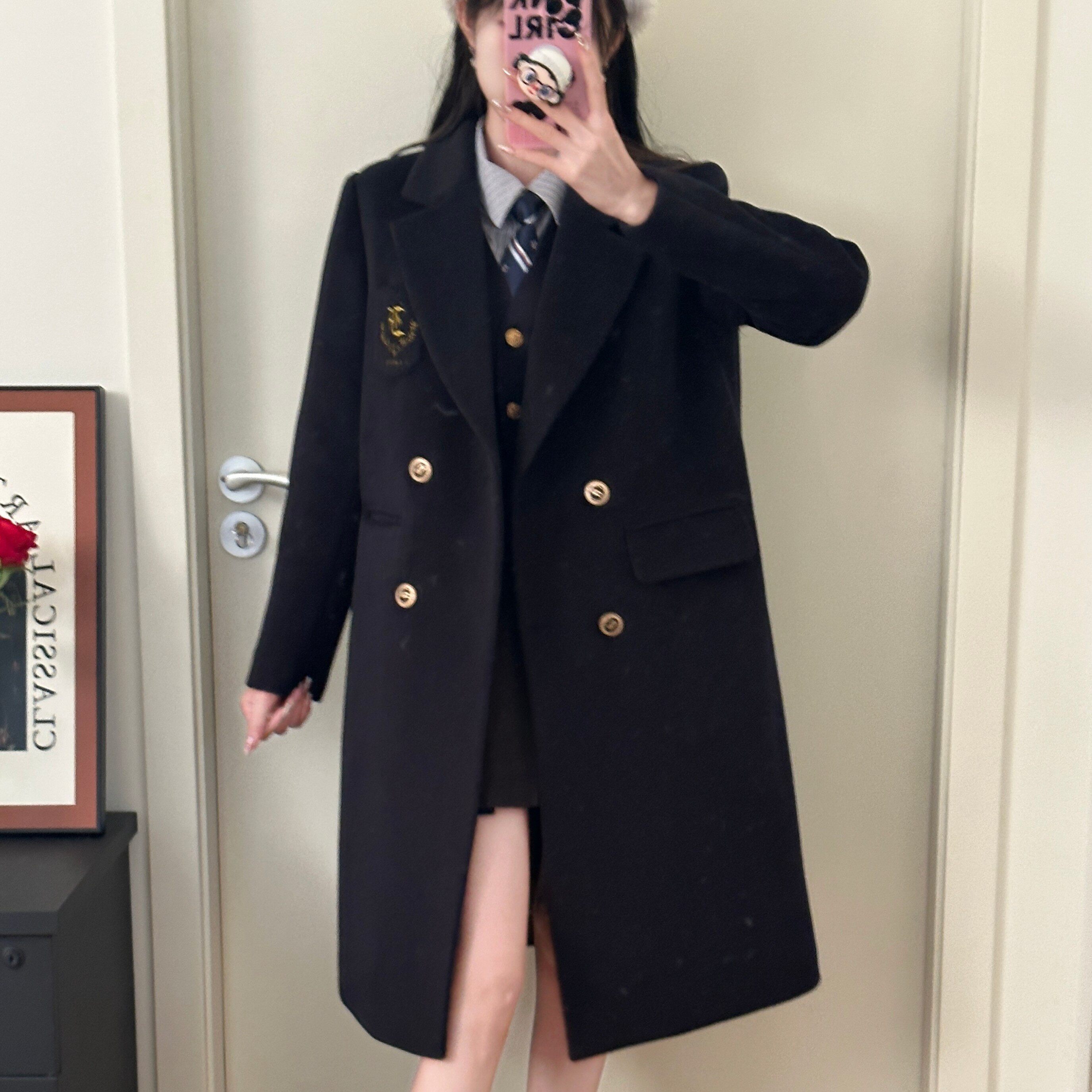 织物猪 绪奈女子 学院风毛呢外套女秋冬制服中长款夹棉呢子大衣