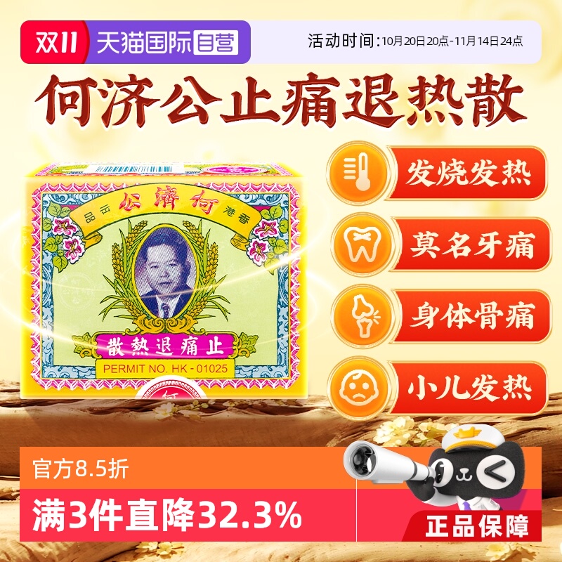 【自营】中国香港何济公止痛药牙痛头痛退烧药退热散正品代购24包