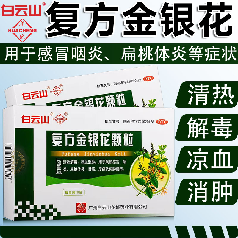 白云山花城 复方金银花颗粒10g*10袋 牙痛咽炎风热感冒药清热解毒