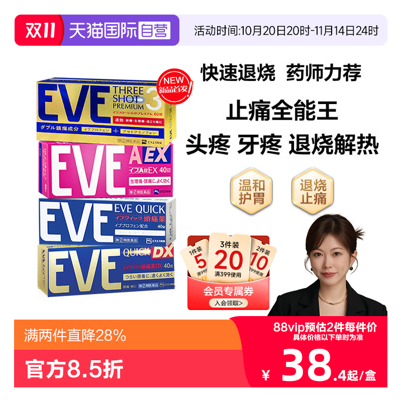 eve布洛芬止疼药退烧药痛经止痛药头疼牙痛速效喉咙痛进口特效药