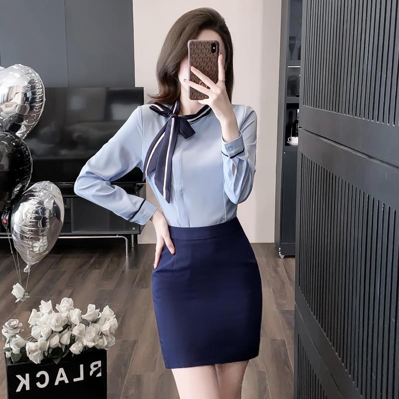 空姐制服职业套装高端浪漫法式复古穿搭衬衫套裙两件套医美工作服