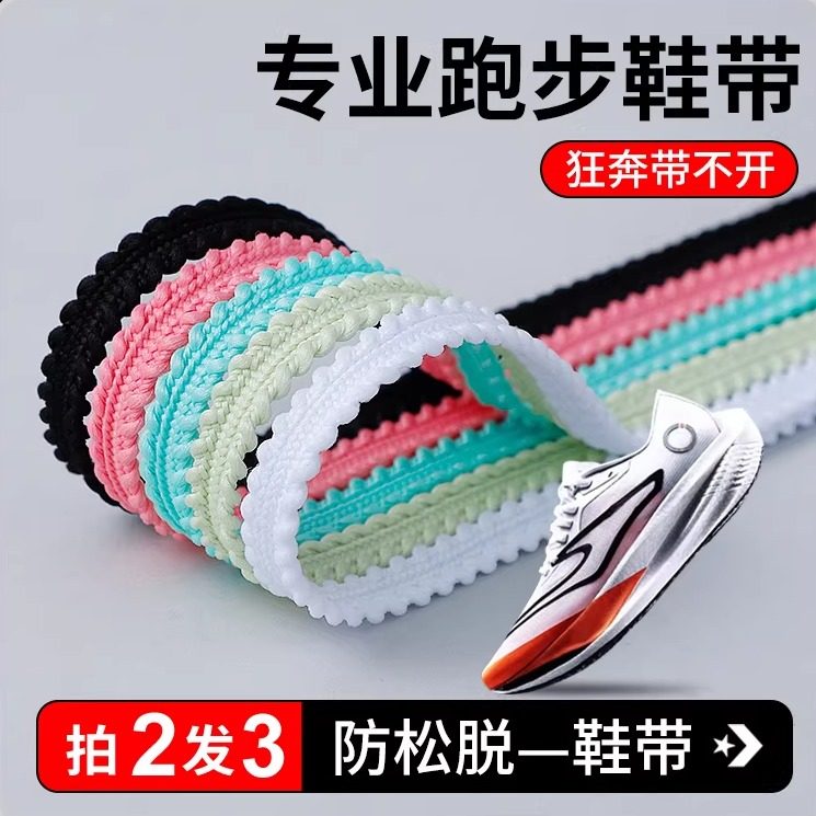 马拉松跑步鞋鞋带麦穗款男女黑白粉绿蓝橘灰色扁平菱形运动鞋鞋绳