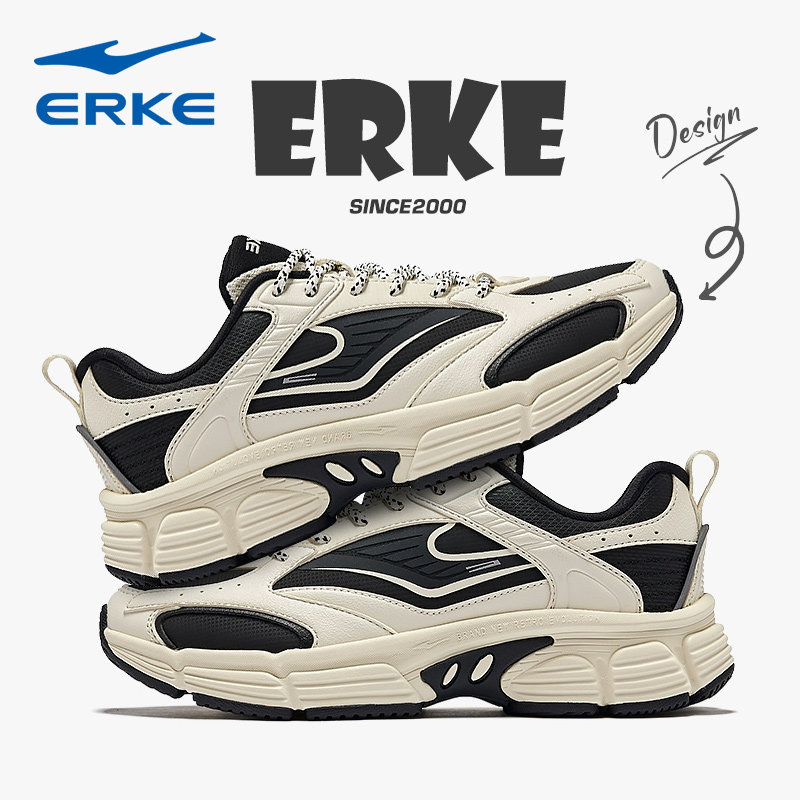 纪元鸿星尔克女鞋2026秋冬季新款学生黑白厚底运动鞋复古跑步鞋子