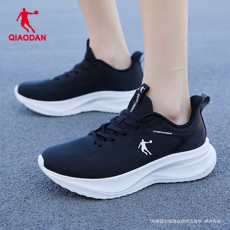 乔丹女鞋黑白跑步鞋秋冬2025新款网面透气运动鞋女轻便旅游休闲鞋