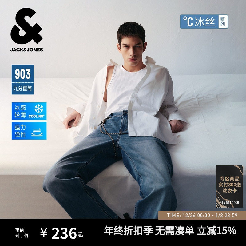 【凉感】903杰克琼斯男装冰丝自在牛仔裤九分裤直筒裤子秋季男款