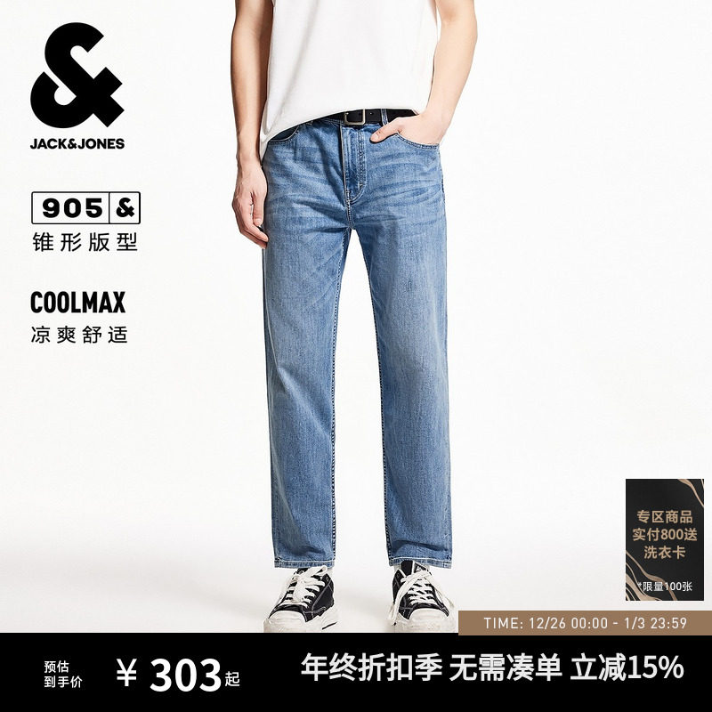 【凉感】杰克琼斯男装秋季牛仔裤九分裤子弹力酷爽干适猫须水洗潮