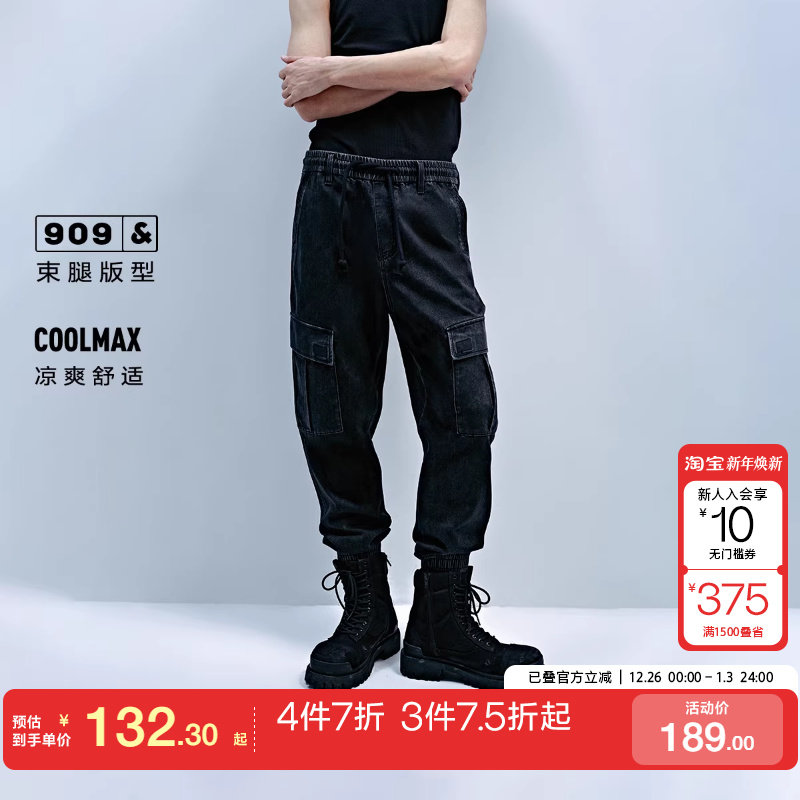 tq区杰克琼斯25春夏酷爽干适简约百搭束脚裤中灰牛仔裤九分裤男