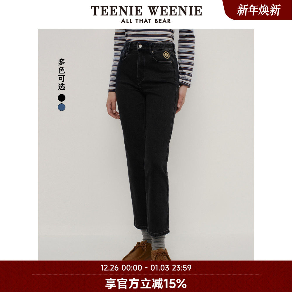 【轻暖绒】TeenieWeenie小熊奥莱秋季牛仔裤九分裤黑色直筒裤
