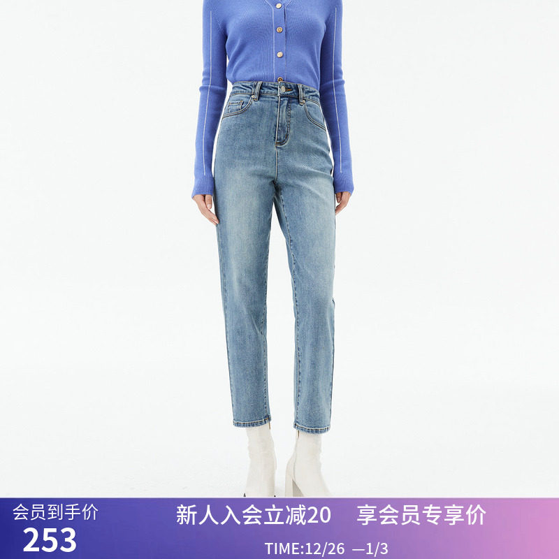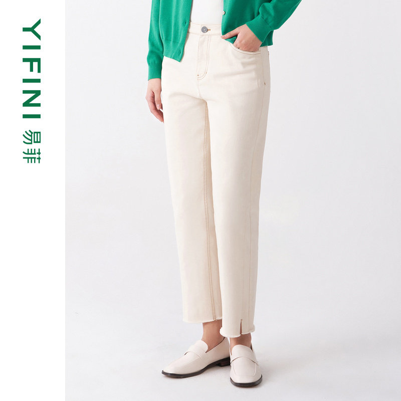[专柜同款]Yifini/易菲显瘦显高牛仔裤九分裤女直筒法棍裤春秋新