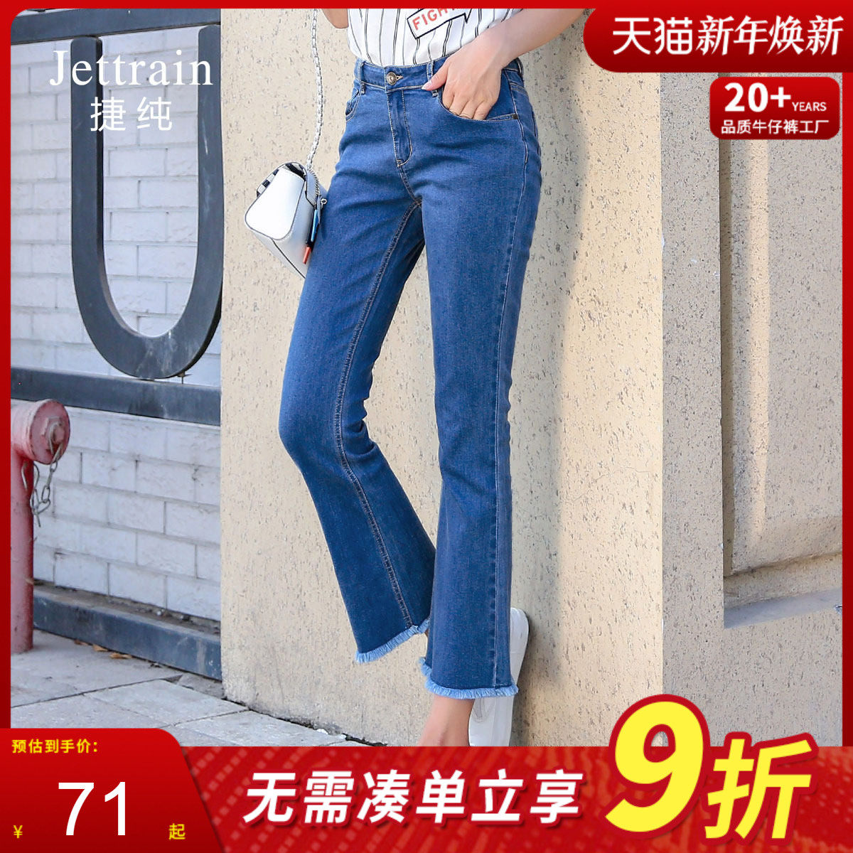 捷纯弹力毛边喇叭裤 宽松牛仔裤九分裤时尚洋气流苏高腰显瘦女裤