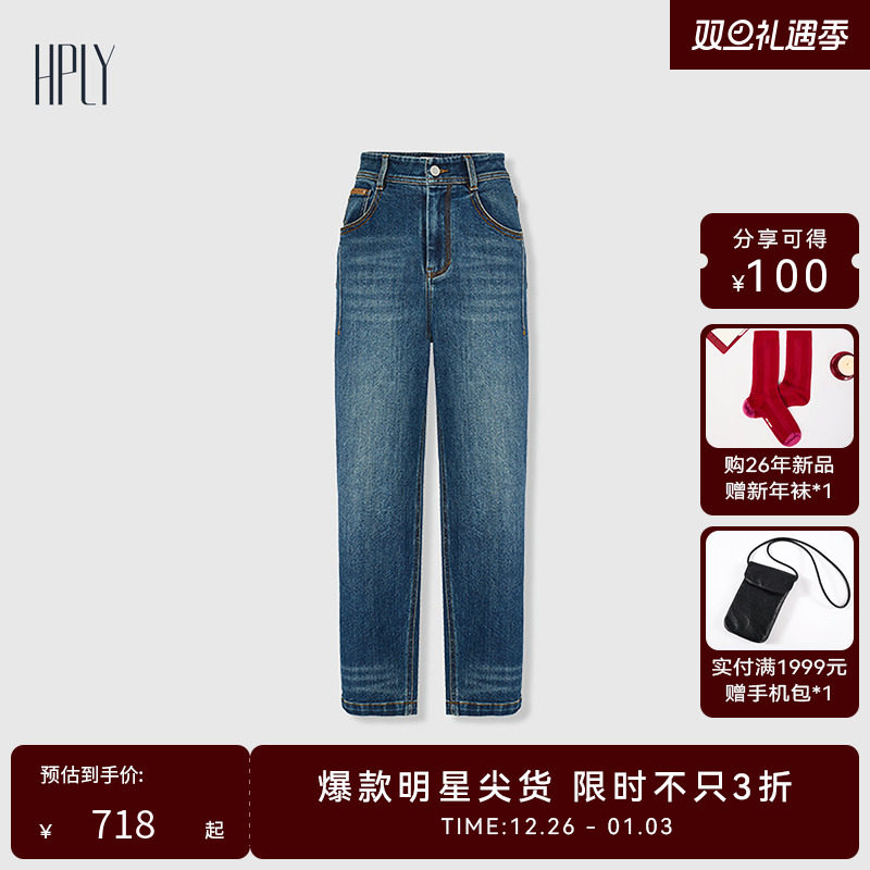 【商场同款】HPLY荷比俪2026春新款棉经典复古水洗牛仔裤九分裤