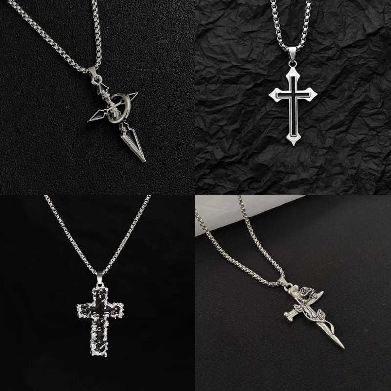 2024年新款十字架项链男女潮小众嘻哈吊坠个性学生卫衣配饰毛衣链