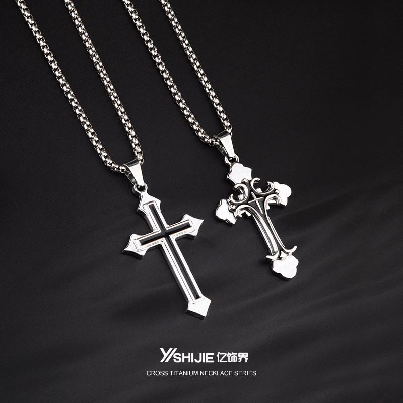 欧美钛钢十字架项链男女款不锈钢锁骨链嘻哈风毛衣链永不掉色吊坠