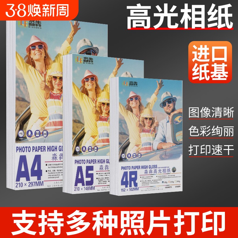 相纸6寸喷墨打印高光A4相片纸5寸7寸10寸4r像纸照相纸A6照片纸A3