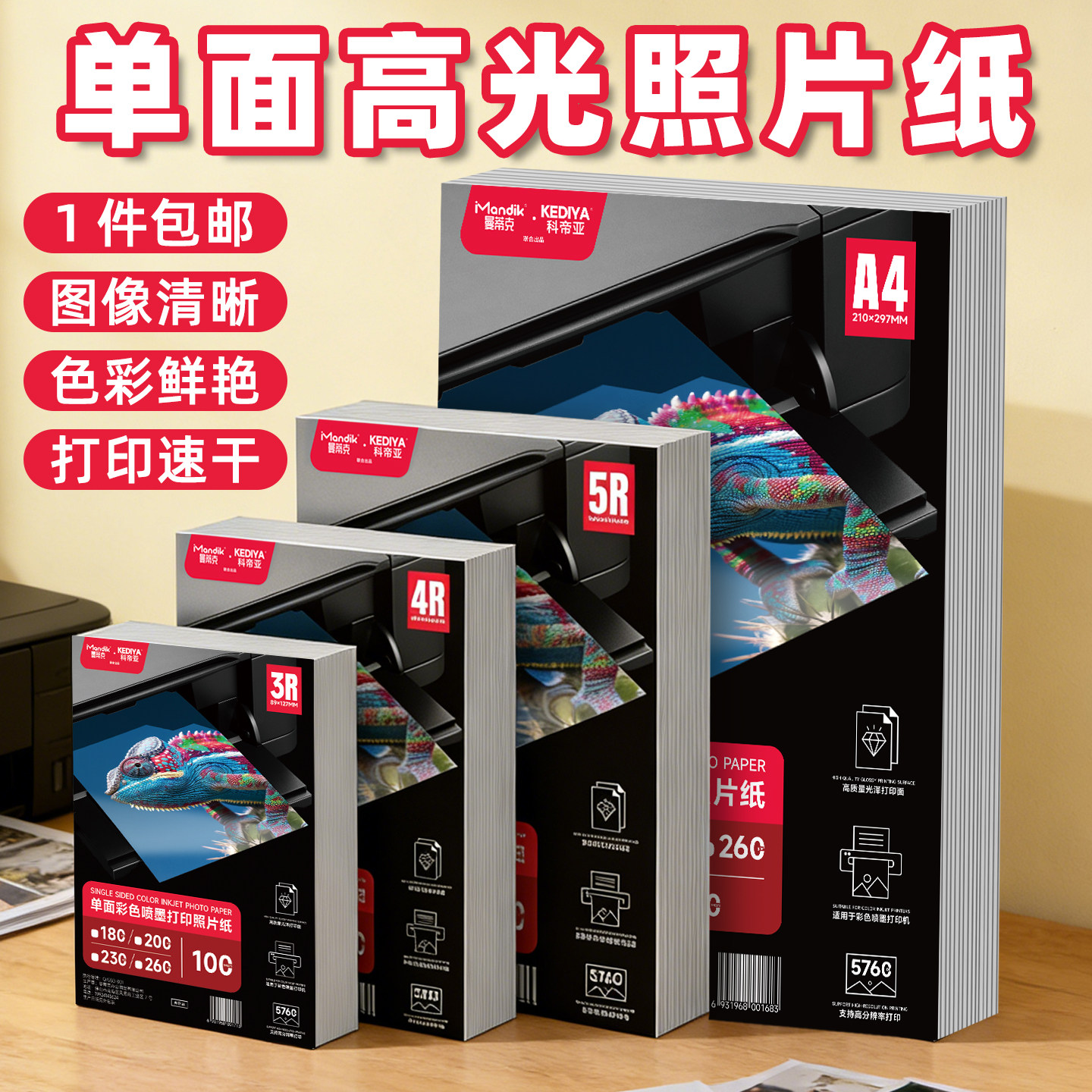 科美达相纸A4 高光照片纸7寸6寸5寸单面喷墨锕照相打印纸180克200克230克g适用爱普生佳能惠普打印机相片纸4r