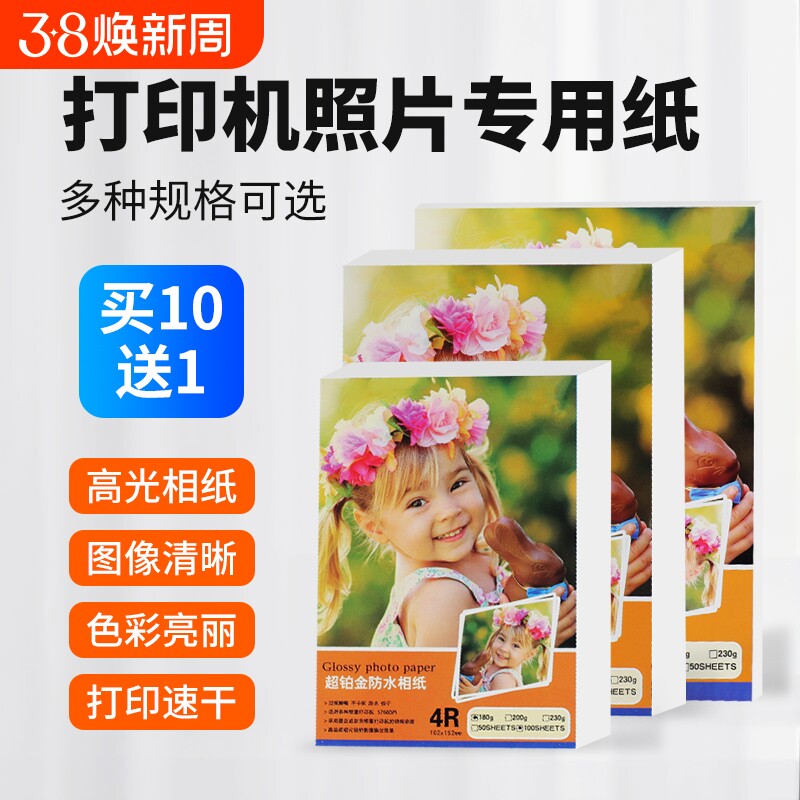 相片纸5寸6寸7寸a4高光彩色喷墨打印机照片纸230g克4r5r哑光a4喷墨打印a3背胶单双面相纸照相8寸10寸4寸3寸