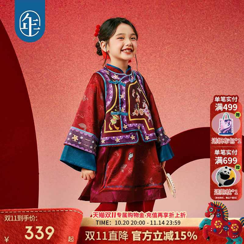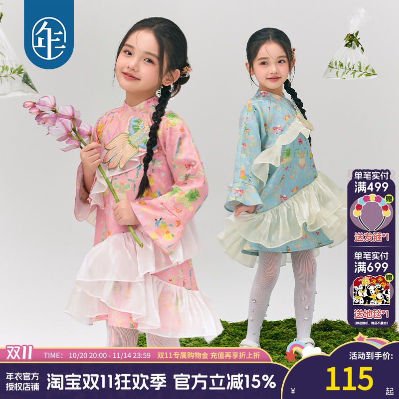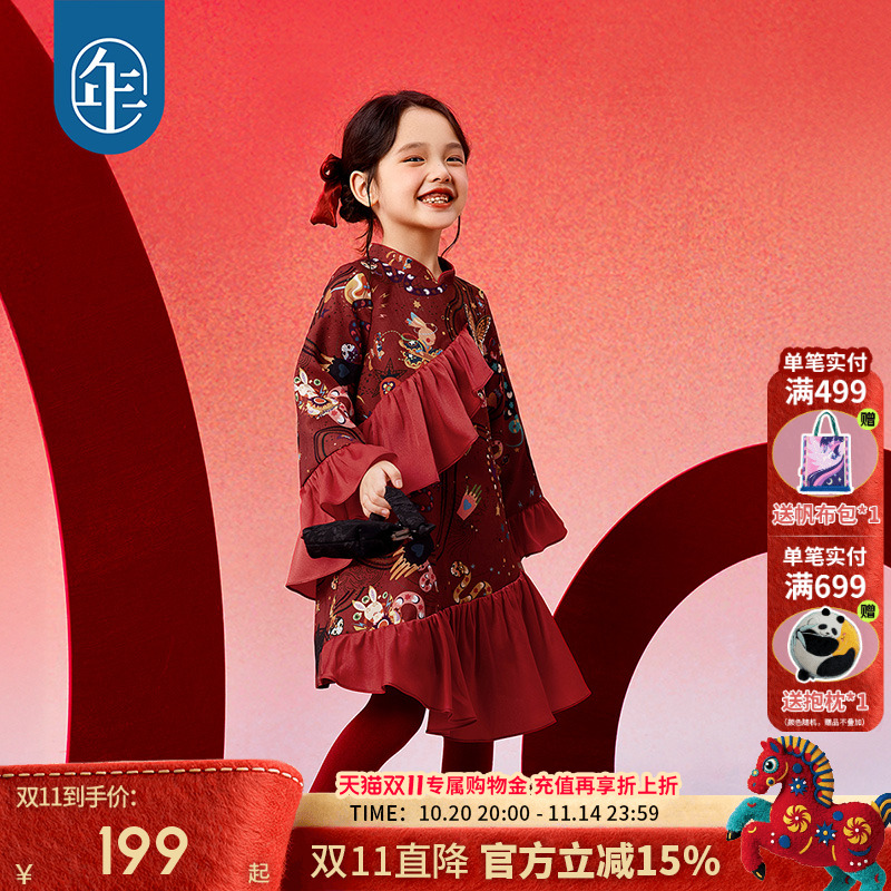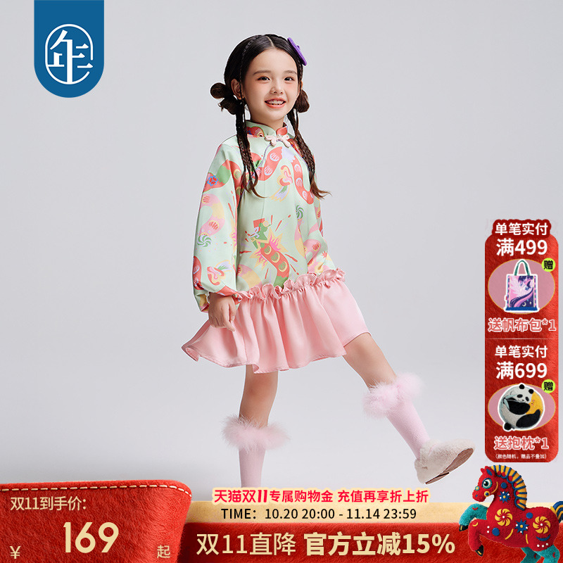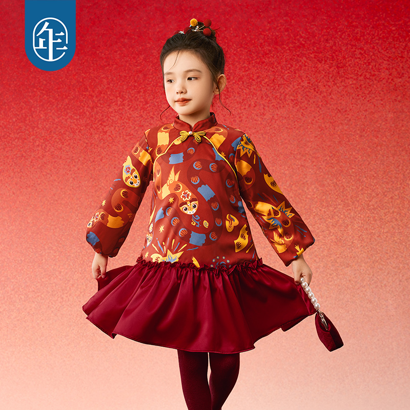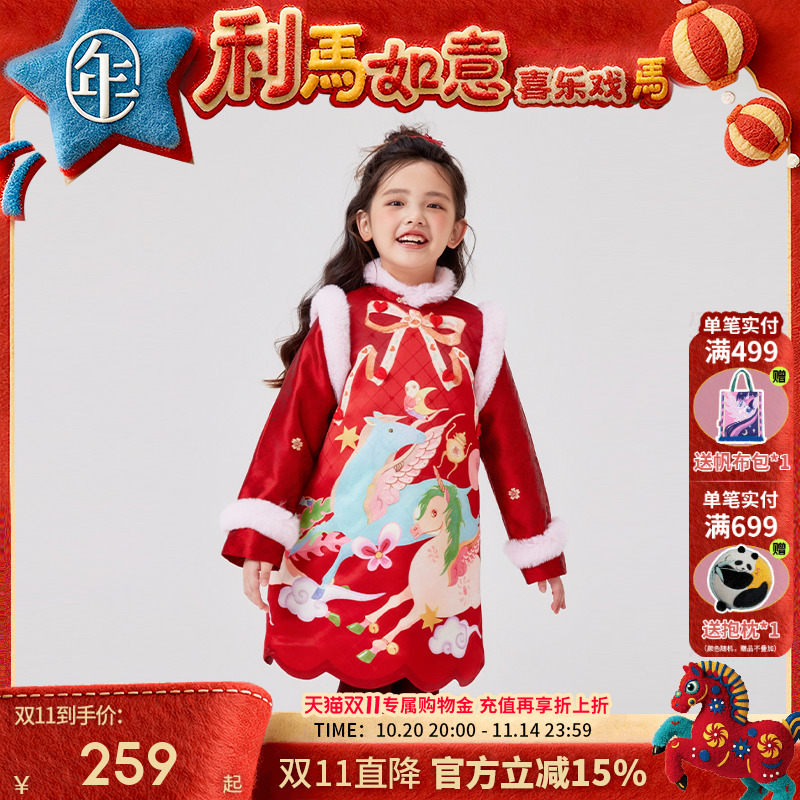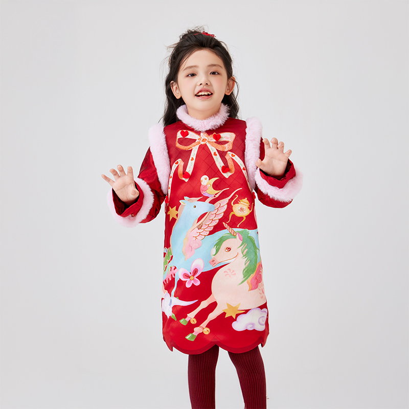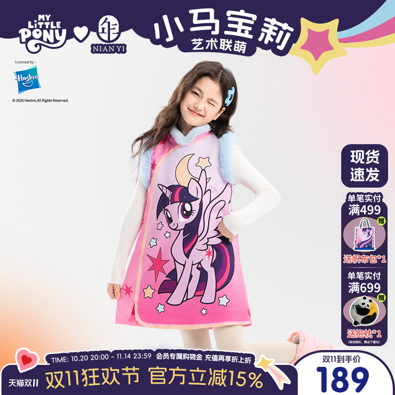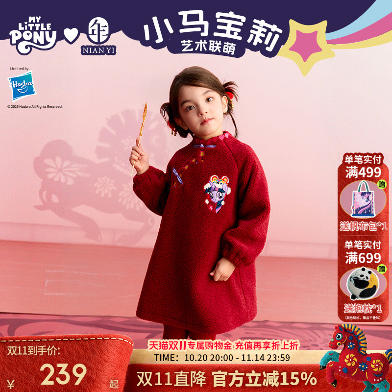 小马宝莉联名年衣童装旗袍连衣裙秋冬新款女童卡通中式演出服礼服