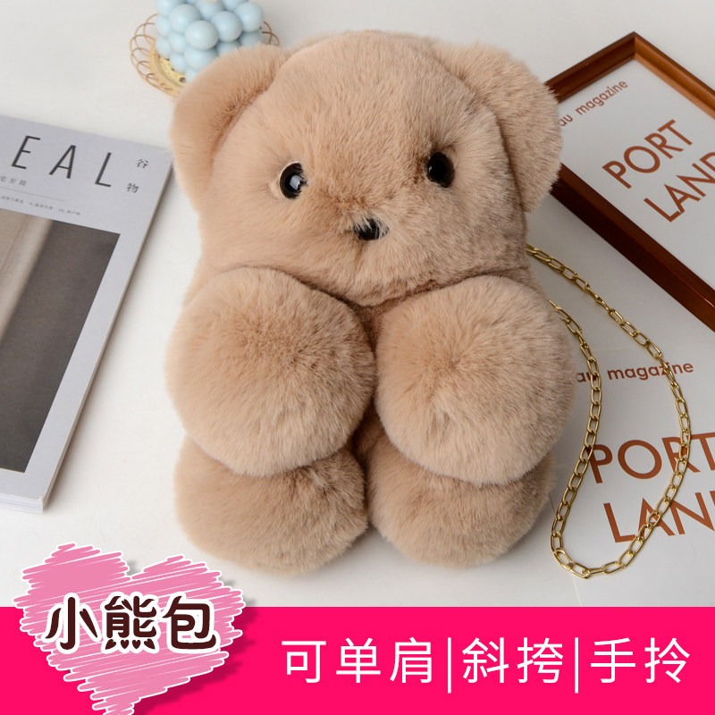 可爱软萌毛绒小熊包包女韩版卡通玩偶女生单肩斜挎个性链条化妆包