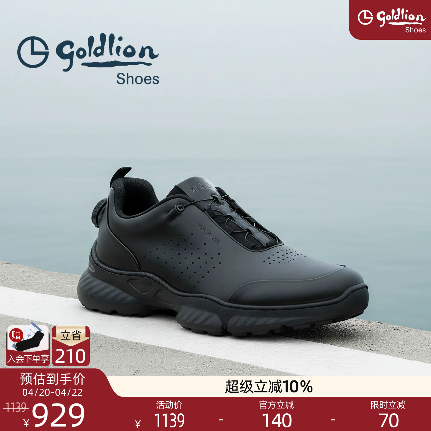 【爆米花底】Goldlion男鞋春季新款高级商务皮鞋旋转扣回弹运动鞋