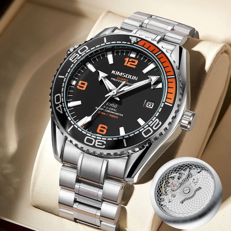 休闲热卖爆款男士手表男表日历六针钢带表石英表运动夜光腕表男款