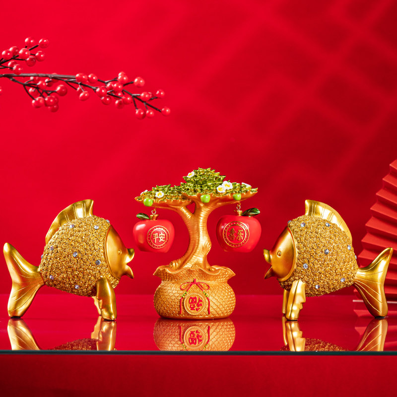 乔迁新居平安喜乐摆件年年有鱼招财客厅中式电视柜就对礼品装饰品