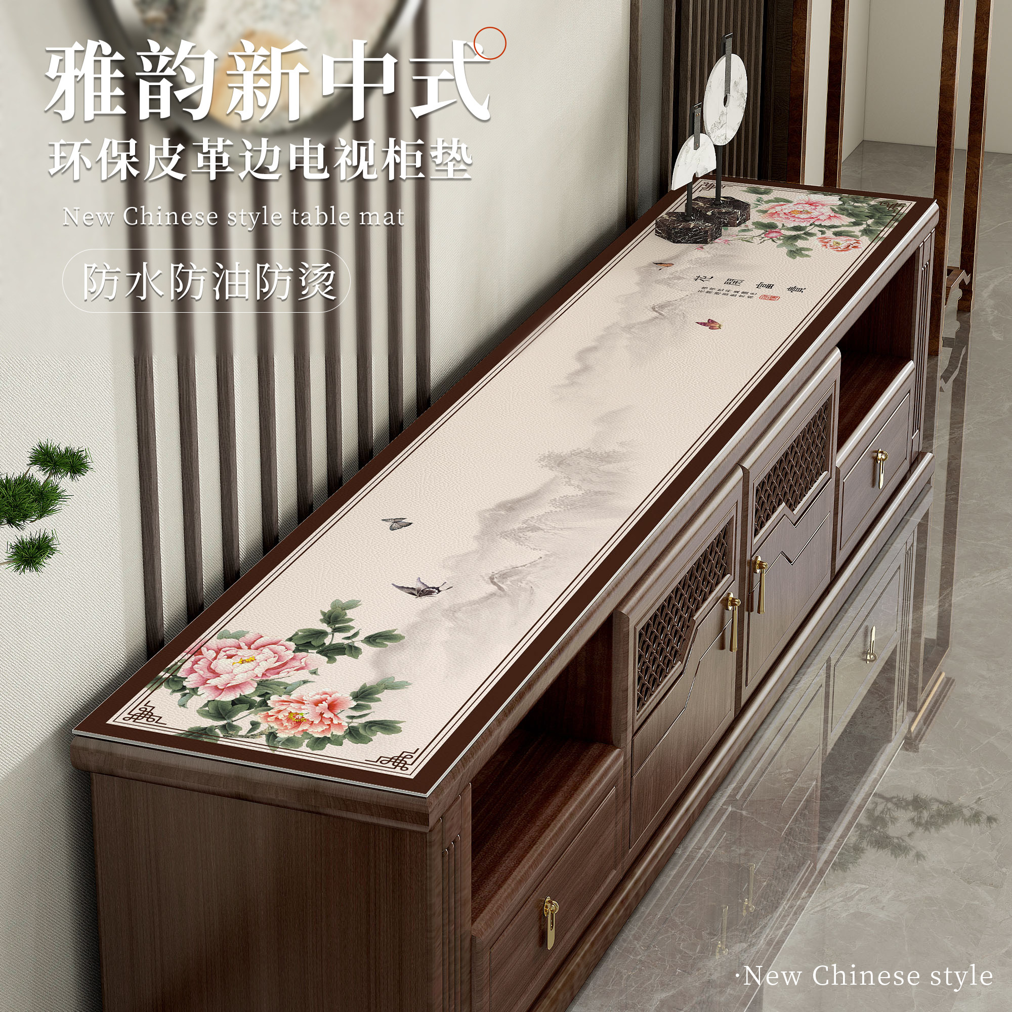 新中式电视柜桌垫防水防油防烫免洗餐边柜鞋柜台面保护垫皮革桌垫