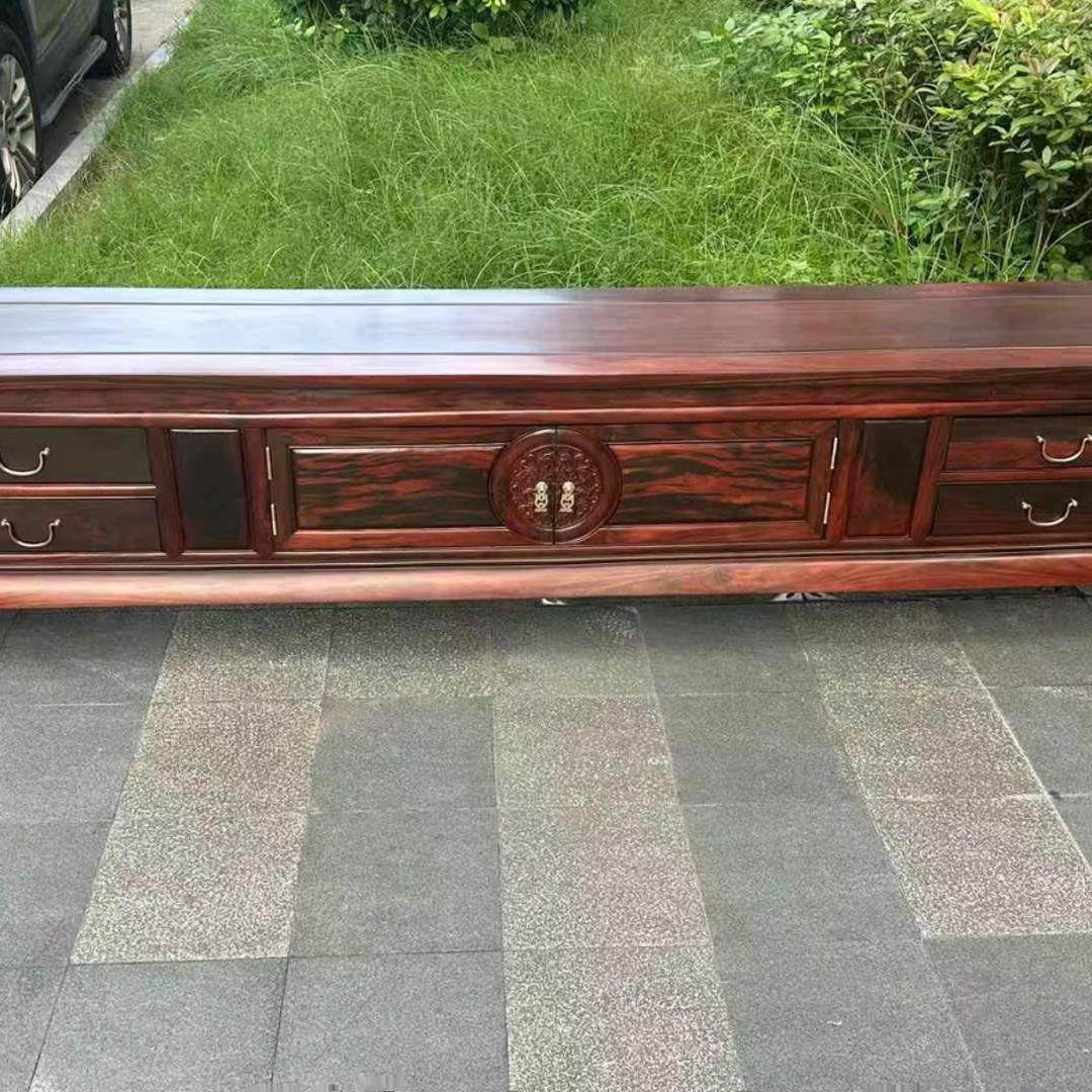 国标大红酸枝交趾黄檀中式电视柜 实木视听柜 客厅四门两抽电视柜