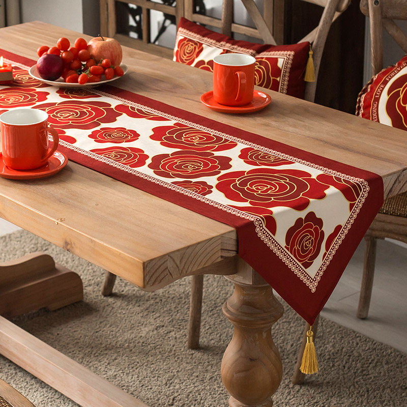 桌旗红色结婚餐桌旗布艺茶几桌布婚庆喜字中式电视柜盖布长条桌布