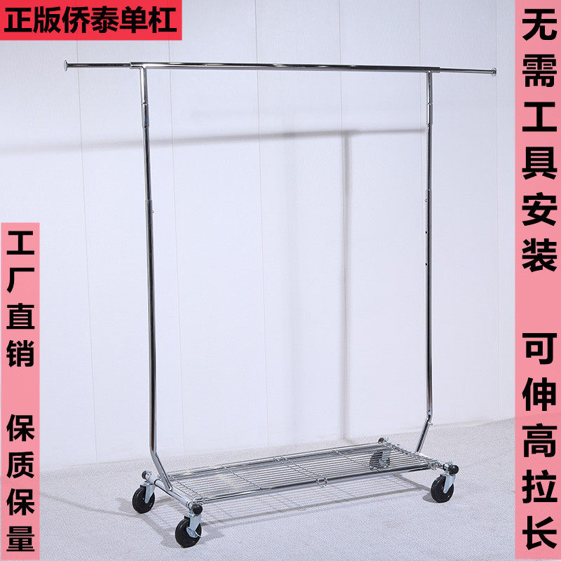 女装店货架落地式不锈钢移动衣架带轮店铺挂衣杆服装店专用展示架