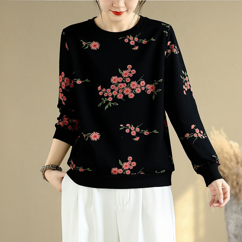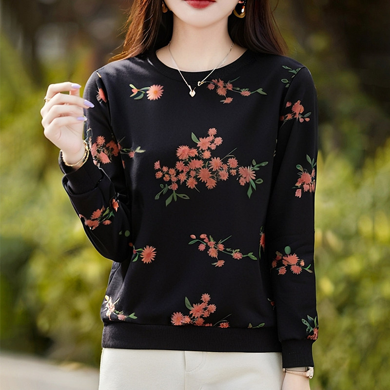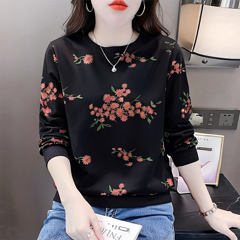 长袖t恤女宽松韩版印花百搭圆领卫衣女款2026春季新款上衣服女装