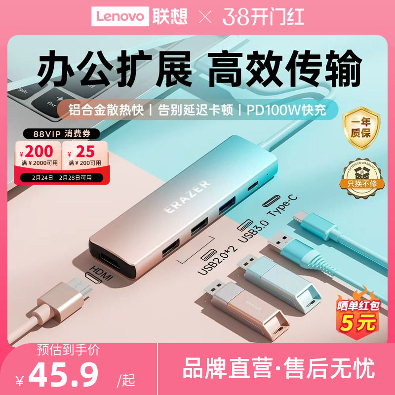 联想typec拓展坞hdmi扩展投屏转换usb分线器hub集线网线多接口转接头适用苹果16雷电4笔记本电脑配件iPad平板