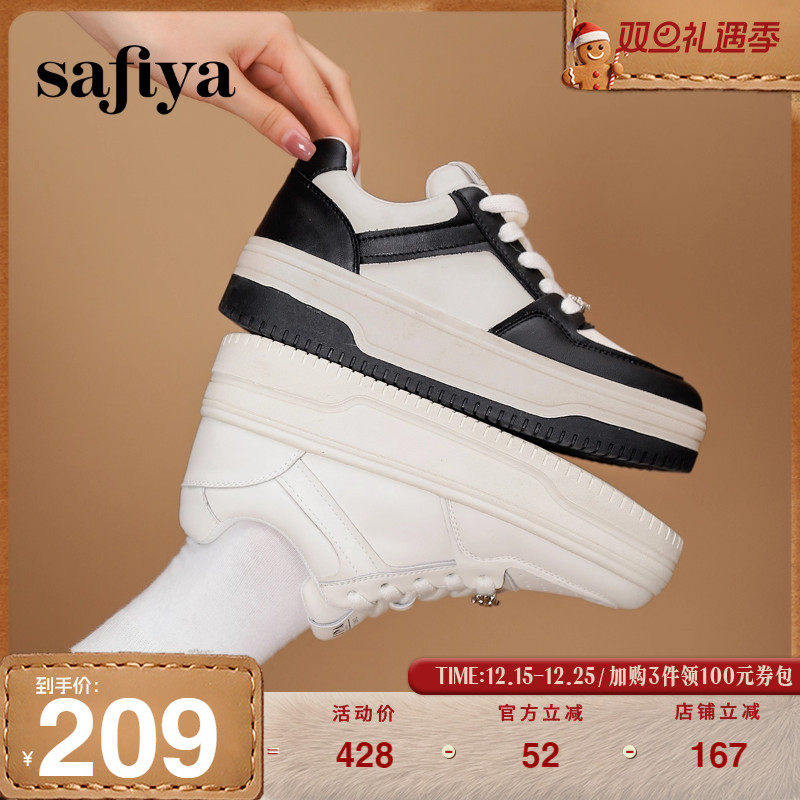 Safiya索菲娅新款黑白熊猫时尚百搭增高厚底板鞋女款小白鞋休闲鞋