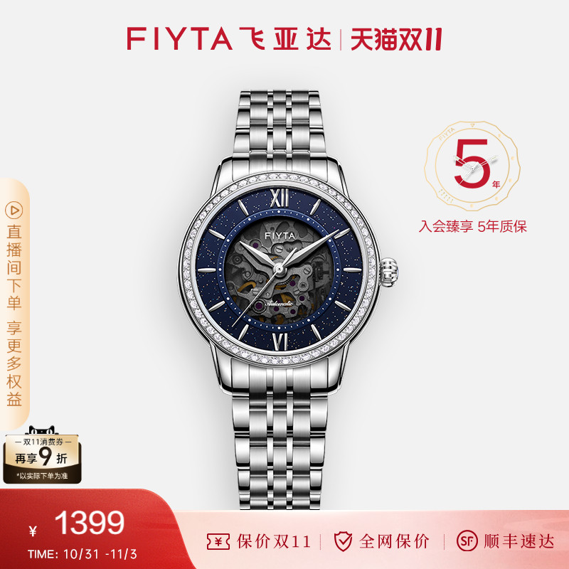 【店铺热销】飞亚达柿柿如意天青色款机械表女腕表轻奢小众手表女