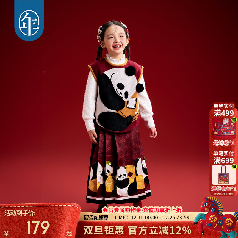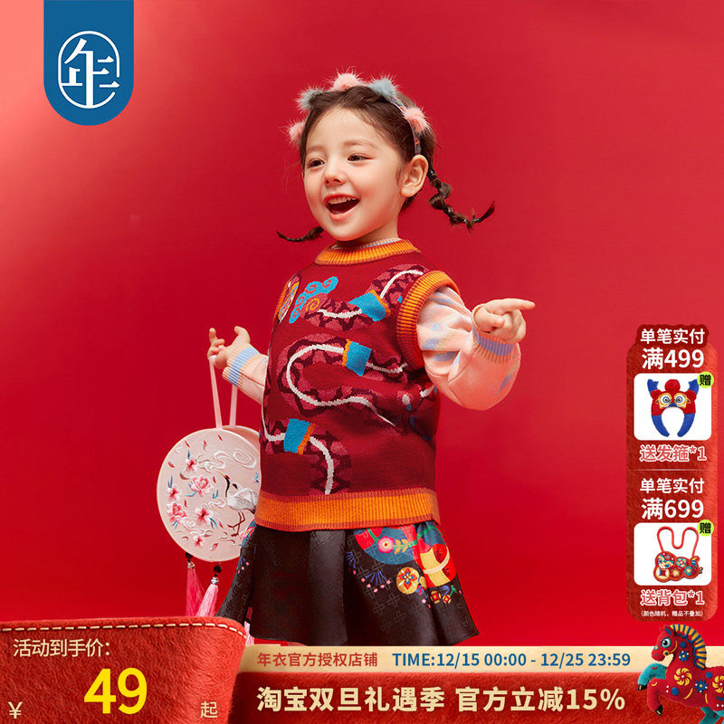Milkbarn2026春季新品男女童小马背心套头针织毛衣保暖羊绒衫新年