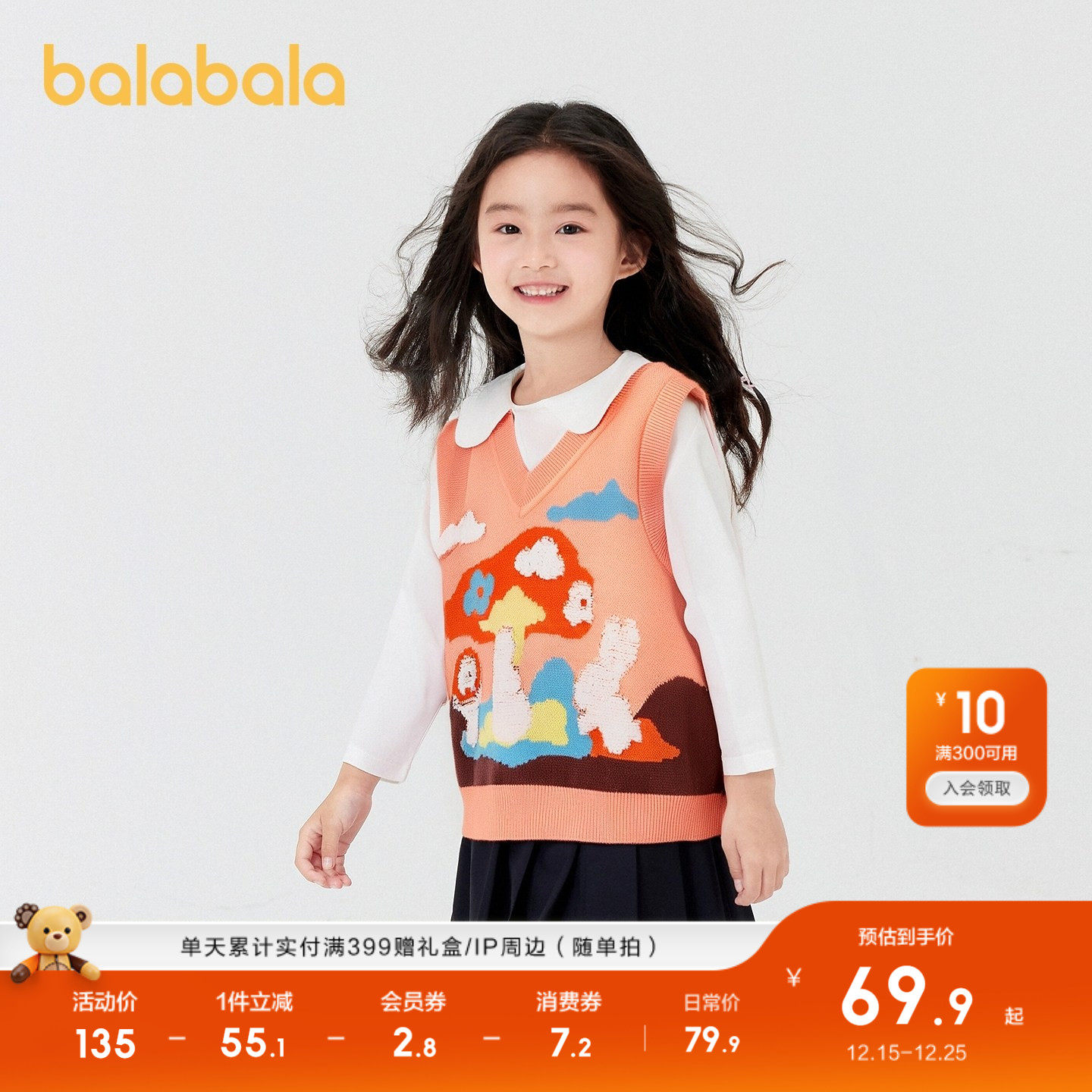 巴拉巴拉童装女童背心V领针织衫秋款套头毛衣中大童马甲时尚舒适