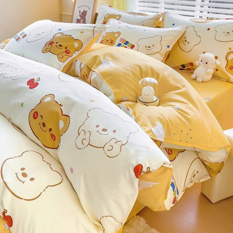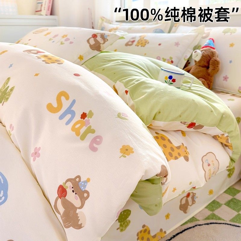 无印良品全棉四件套学生宿舍纯棉卡通儿童被套床单三件套床上用品