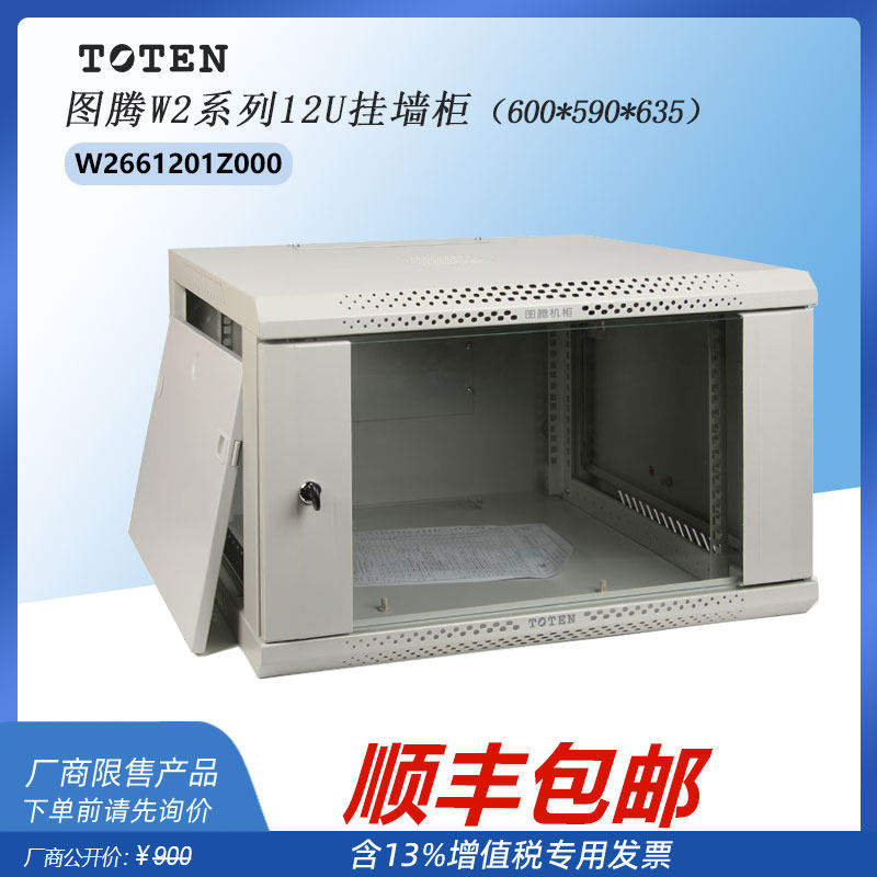 图腾12U墙柜W26612挂壁式590深635mm高原装TOTEN黑色灰白色可选标准19英寸办公家用网络小机柜弱电挂墙柜