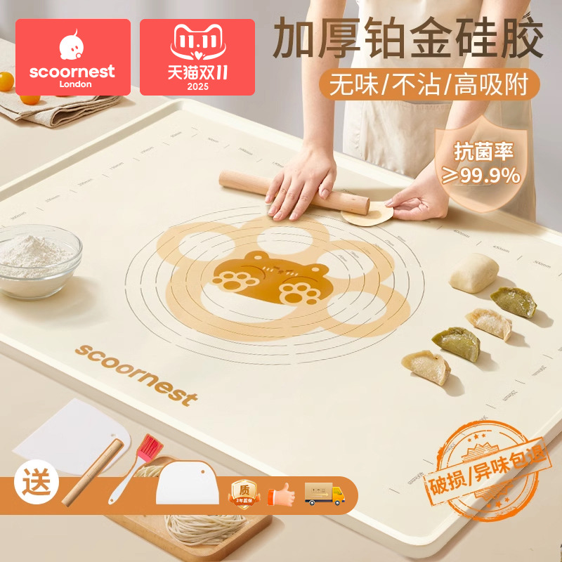 双枪奶嘴级铂金硅胶揉面垫加厚食品级烘焙面板案板家用擀面和面垫