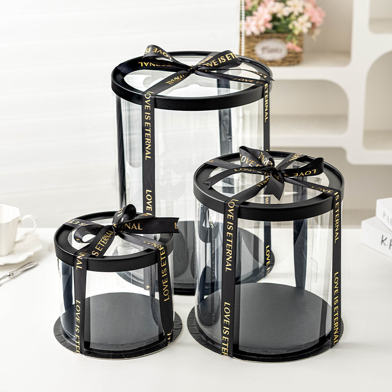 蛋糕包装盒子生日黑色圆形透明4四6六8八寸装打加高一次性双层的