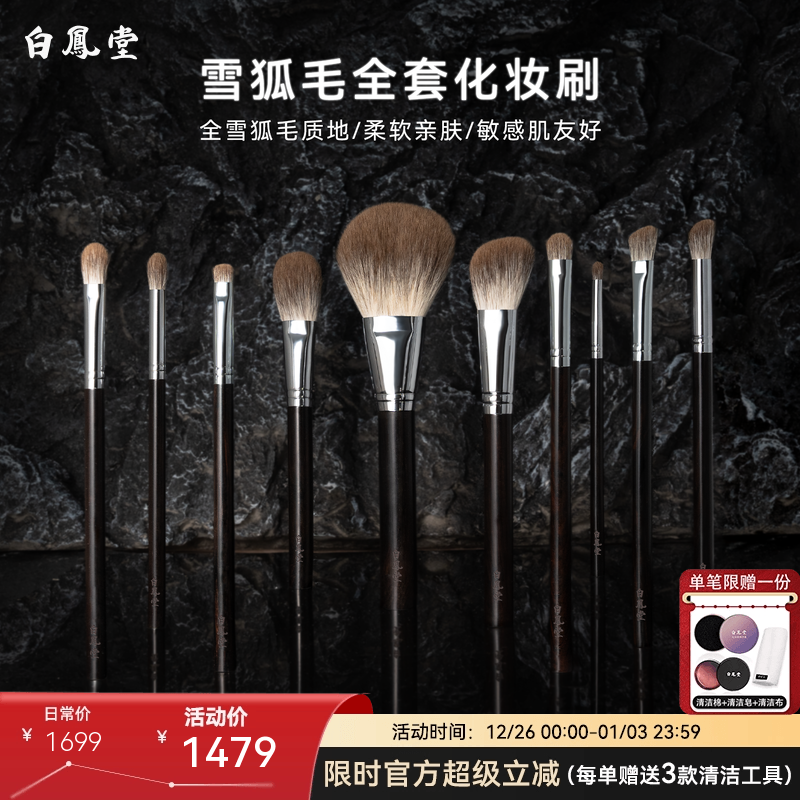 白凤堂雪狐毛乌木化妆刷动物毛刷散粉刷腮红刷眼影刷修容刷细节刷