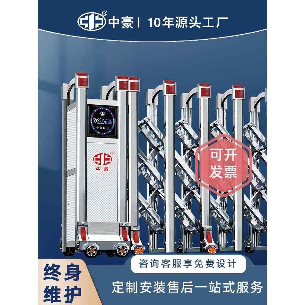 中豪不锈钢电动伸缩门学校工地单位工厂大门铝合金折叠推拉平移门